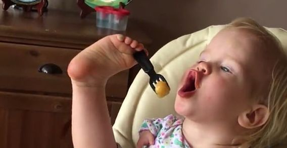 Micuta Vasilina a devenit cunoscuta pe net dupa ce mamica ei, Elmira Knutzen, a postat pe Facebook cateva imagini cu ea. Fetita s-a nascut fara maini, dar asta nu a impiedicat-o sa faca ceea ce ce face orice copil normal. Astfel, Vasilina a fost filmata de mama ei cum se distreaza si mananca cu picioarele.