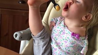 Vasilina este o fetita de cateva luni care s-a nascut fara maini. Micuta a invatat totusi sa se hraneasca singura si isi foloseste picioarele pe post de maini.