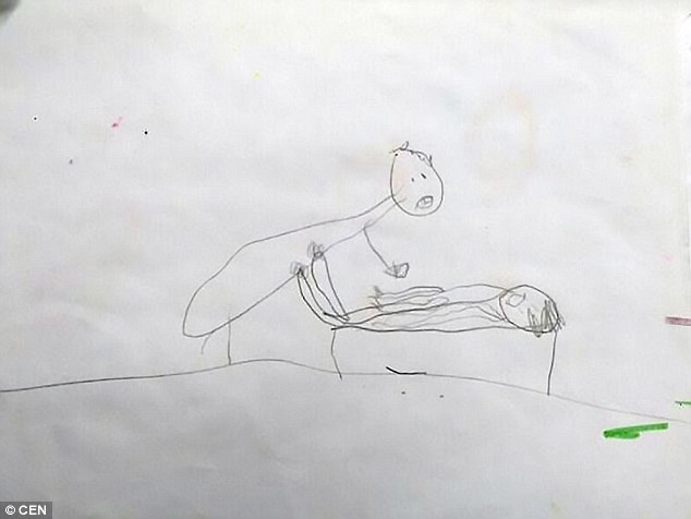 Acestia au dus-o pe micuta la un psiholog care i-a pus sa caute in camera micutei semne ca a fost victima unui abuz. Ei au descoperit astfel sase desene socante prin care fetita lor detalia abuzul sexual.