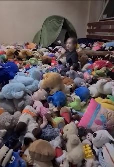 O fetiță de doar 3 anișori, refugiată din Ucraina, momente de bucurie nemărginită. Ce reacție are copila când descoperă un munte de jucării de pluș