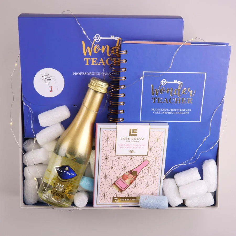 Un magazin online care vinde cadouri pentru "profesoare pretențioase" a stârnit revoltă în rândul părinților. În cutia-surpriza nu se regăsește un cadou simbolic, ci unul de lux: o sticlă de șampanie cu foiță de aur, ciocolată fină și o agendă care vine musai la pachet cu celelalte răsfățuri.