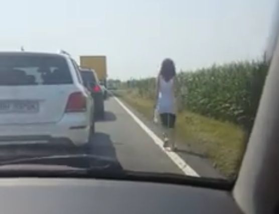 In timp ce statea in coloana, pe un drum din Drajna Noua, Calarasi, Oana Racheleanu a observat ca, dintr-un jeep, cineva a "scapat" o sticla de plastic in sant.