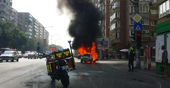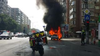 In videoclip se vede clar cum masina este pe jumatate in flacari. Momentan, nu se stie de la ce a pornit focul.