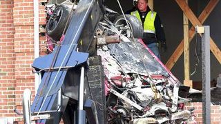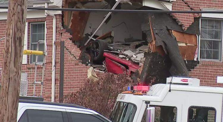 Accidentul foarte grav a avut loc dumincă dimineaţă în New Jersey. Un Porsche Boxter a ieșit în mare viteză de pe șosea, a zburat la propriu până ce a aterizat la etajul unei vile.