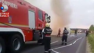 Cel care filmeaza totul sustine ca nu e nimeni langa masina. Multi dintre cei opriti sa vada prapadul se tem de ce e mai rau: in autotusirmul transformat intr-o minge de foc cineva ar putea fi prizonier.