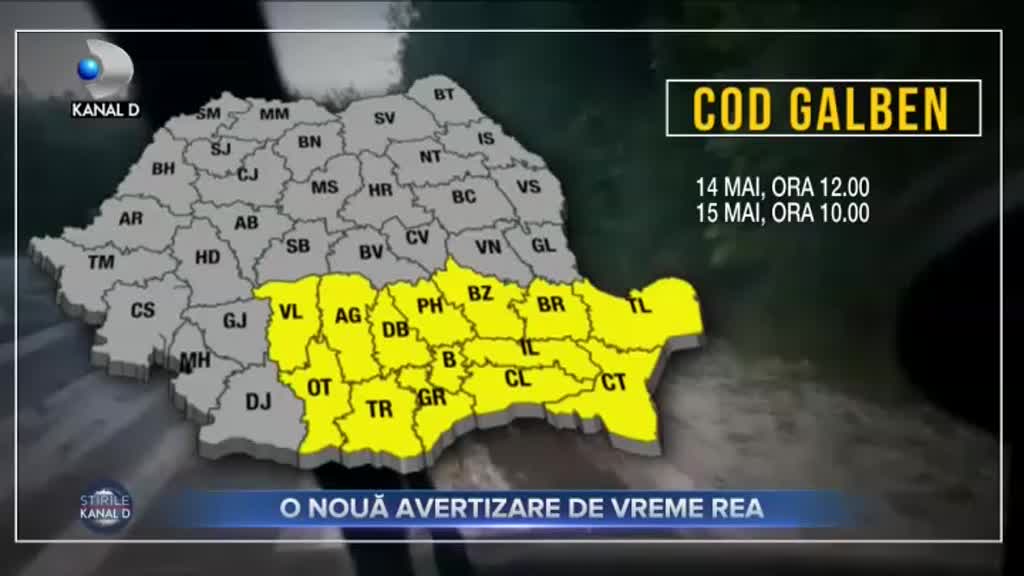 Stirea "O nouă avertizare de vreme rea" difuzata in cadrul Stirilor KANAL D din 14 05 2022