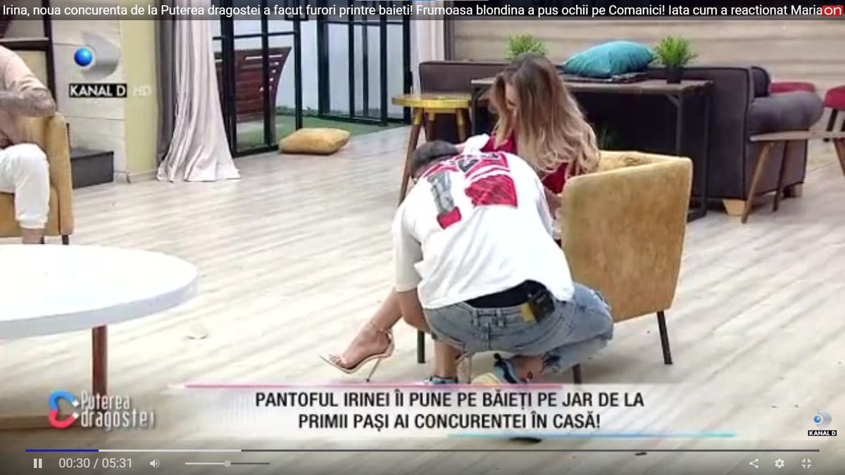Irina a făcut furori printre băieți încă de la bun început. În ediția de vineri a emisiunii Puterea dragostei băieții au fost plăcut surprinși de intrarea unei noi fete in casa iubirii. Aceasta a ales sa poarte o ținută extrem de sexy si a pus pe jar inimile multor concurenți, chiar si cei care aparent sunt implicați într-o relație, precum Romeo, care a sărit chiar sa o ajute sa își rezolve o problema la pantof.