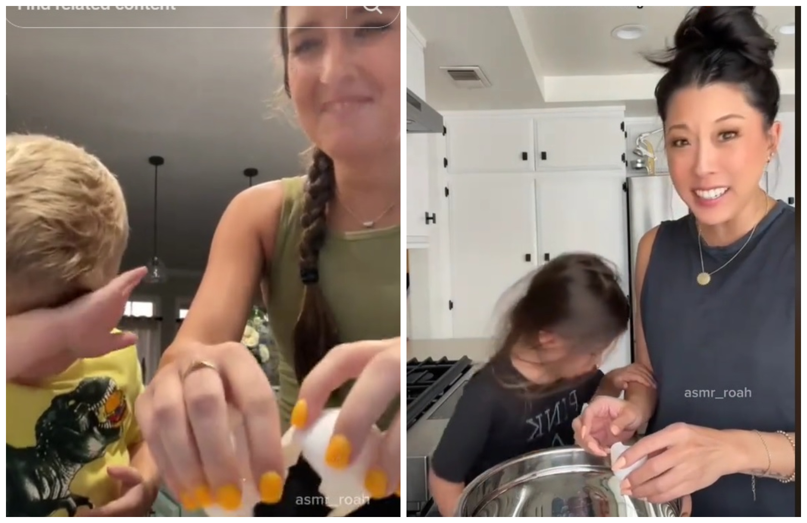 „Am fost etichetată în câteva dintre aceste videoclipuri și am văzut că merge în două direcții”, explică femeia care are numele de utilizator mom.uncharted. „Unul, copilul pune oul pe cap și este cam confuz, crede că este puțin amuzant. Apoi, merge mai departe. Sau, părintele îi sparge oul pe cap, iar cel mic este foarte supărat din cauza asta și se sperie.”