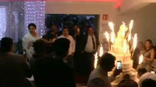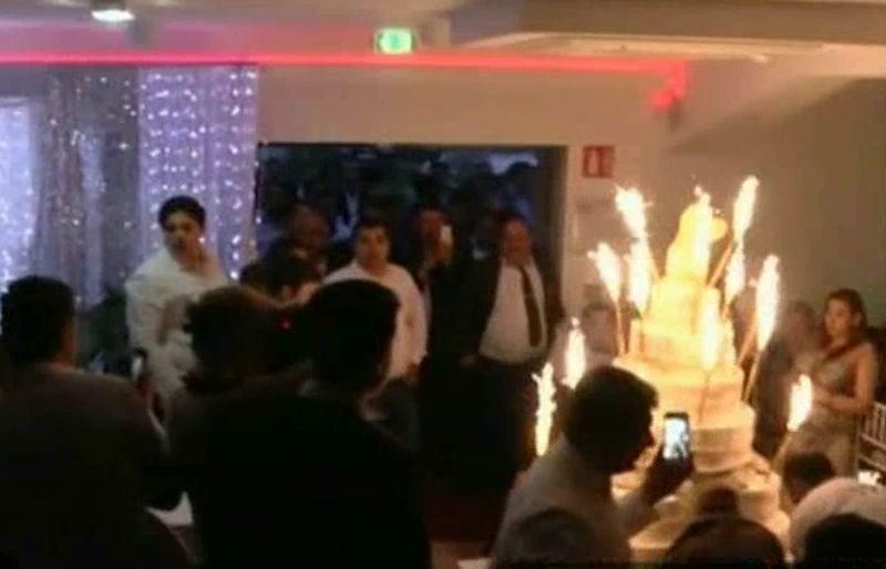 La restaurant mirii au stat pe jilturi si s-au ospatat regeste impreuna cu cei 400 de invitati. Vedeta a fost tortul urias, inalt de aproape trei metri, care a numarat noua etaje.