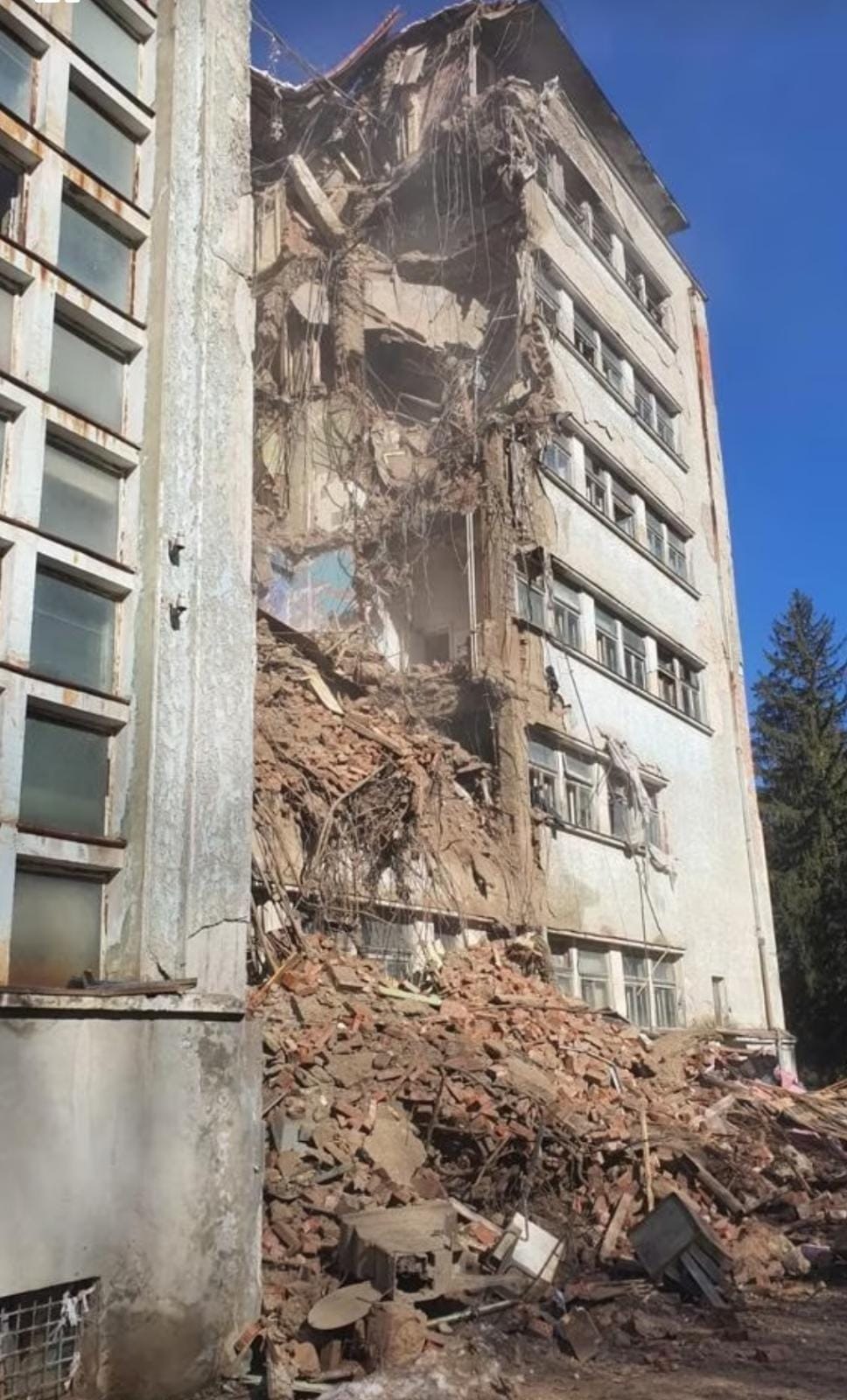 2 din 3 | VIDEO/FOTO - O parte din acoperișul Sanatoriului Marila din Oravița s-a prăbușit. Zeci de persoane au fost mutate la spitalul din Oravița