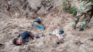 Poliţiştii ucraineni le-au arătat reporterilor patru cadavre pe jumătate înhumate într-o groapă săpată într-o pădure de pini din apropierea locuinţei primăriţei, precum şi cadavrul unui bărbat zăcând într-un puţ din grădină.