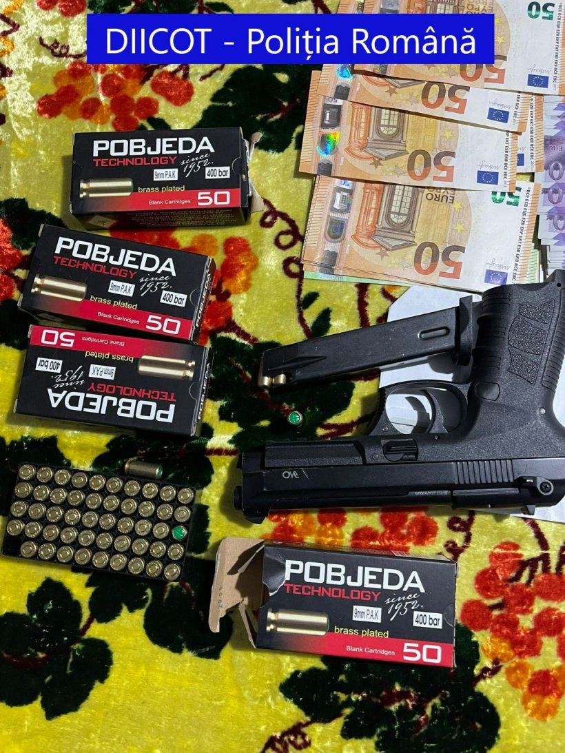 În urma perchezițiilor, au fost ridicate 1.288 de pachete cu țigarete de diferite mărci, sumele de 118.850 de lei, 9.485 de euro și 140 de lire, un dispozitiv de înlocuire a plăcuțelor de înmatriculare în mers, plăcuțe de înmatriculare false, precum și un pistol neletal și cartușe.