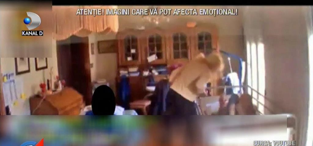 Intr-una din imagini se vede cum infirmiera o bruscheaza pe o batrana si o impinge in pat, fara sa-i pese ca biata femeie se misca greu.