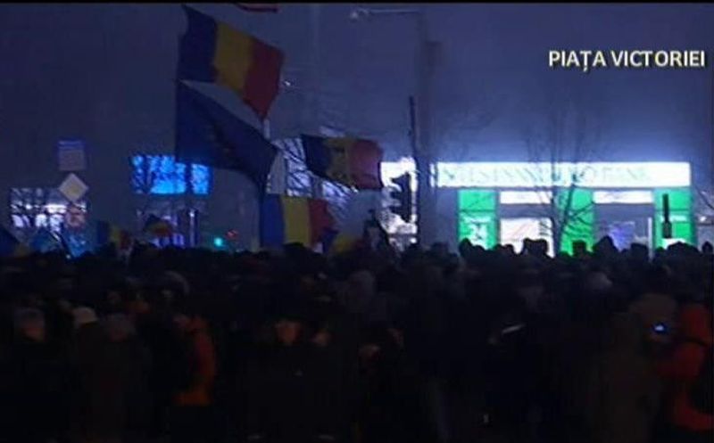 UPDATE 21.45: Aproximativ 25.000 de persoane au iesit, luni seara, in Piata Victoriei pentru a cere demisia Guvernului. Manifestantii au scandat: "Demisia", "Refuz acest abuz", "Hotii", "Anticipate", "Jos Guvernul", "DNA sa vina sa va ia", "PSD, ciuma rosie", "Zi de zi aici vom fi", "Rusine sa va fie", "Noaptea, ca hotii". Multi dintre demonstranti si-au aprins lanternele telefoanelor mobile.