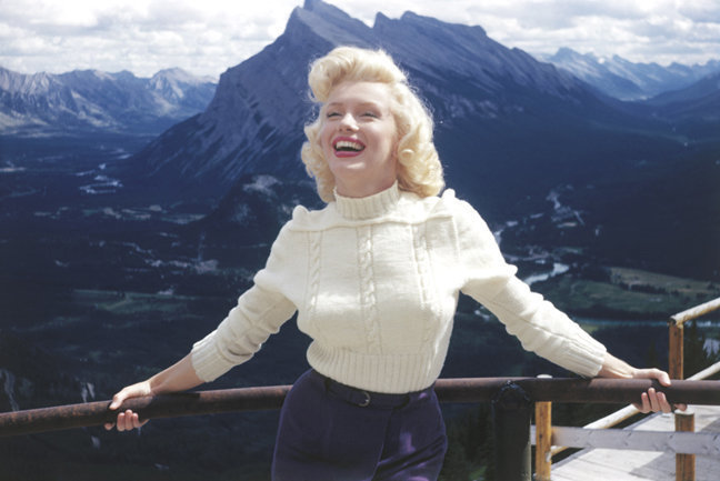 Intr-una din fotografii, Marylin Monroe sfideaza camera, intr-un peisaj montan idilic. Intr-o alta imagine poarta o rochie roz, fiind fotografiata in timp ce se joaca cu un caine, relateaza Huffington Post.