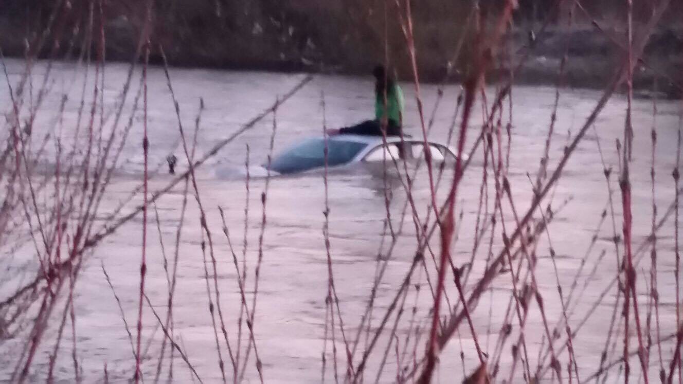 1 din 3 | O soferita a fost salvata dupa ce a plonjat cu masina in raul Iza! Femeia a fost luata de curent si plimbata cateva sute de metri!