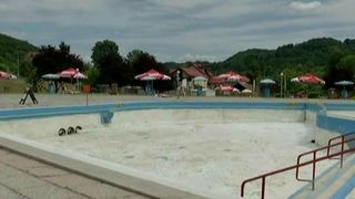 Ajungem si la strandul cu apa iodata, la marginea orasului. Il administreaza aceeasi societate care a lasat in paragina toata perla statiunii. 10 lei costa intrarea, dar mare lucru nu gasesti. Din cele trei bazine... doua sunt goale. In jur, cateva cabanute modeste in care turistii se pot caza. In rest, nimic.