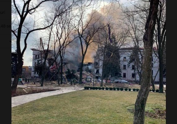 Viceprimarul orașului Mariupol, Serhiy Orlov, a afirmat că forțele ruse au bombardat clădirea teatrului în case se ascundeau civilii din Mariupol.