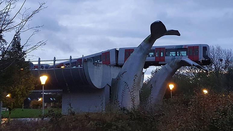 Conducătorul era singurul prezent în tren care a scăpat teafăr și nevătămat, datorită sculpturii. Imediat după incident au apărut imagini pe site-ul de socializare Twitter, iar acestea sunt de-a dreptul spectaculoase. Trenul a rămas suspendat la o înălțime de 10 metri în aer, agățat de coada de balenă, care l-a oprit și a evitat prăbușirea în apă.