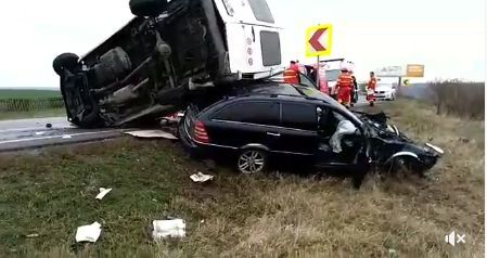 Soferul unei autoutilitare a murit, duminica dupa-amiaza, in judetul Olt, dupa ce autoutilitara pe care o conducea s-a ciocnit cu un autoturism, dupa care s-a rasturnat si a ramas suspendata pe autoturism.