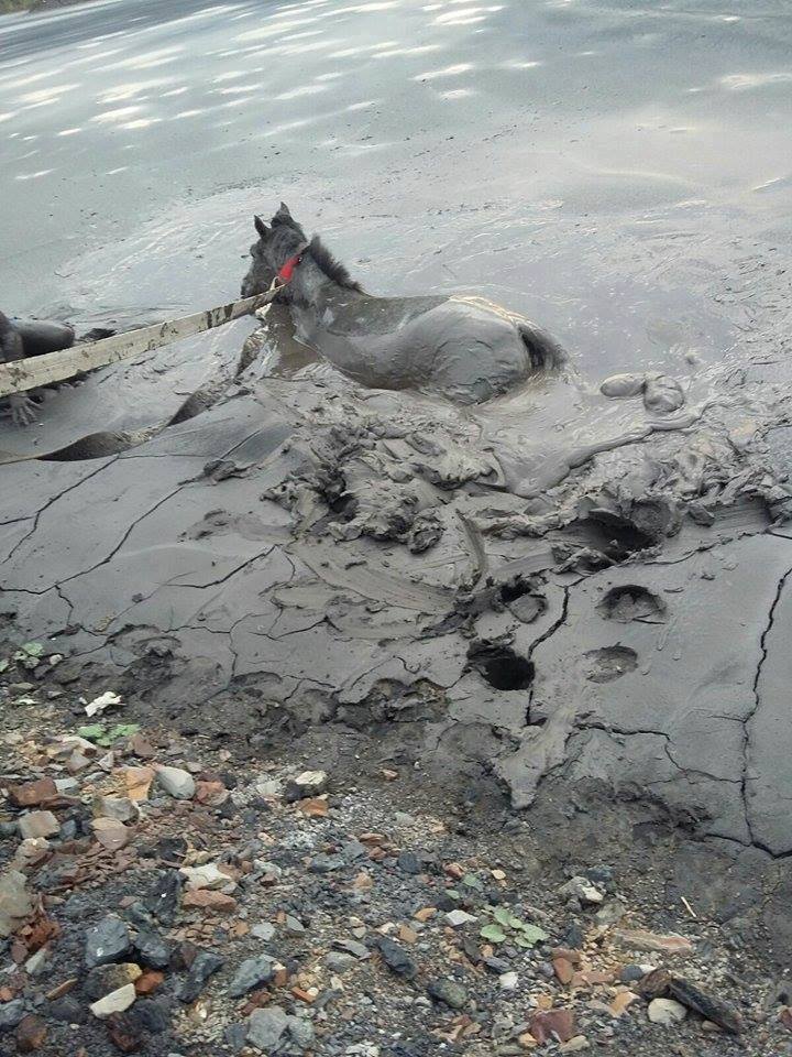Interventia pompierilor a fost una dificila pentru ca animalele au ramas blocate in namolul rezultat din prelucrarea carbunelui.