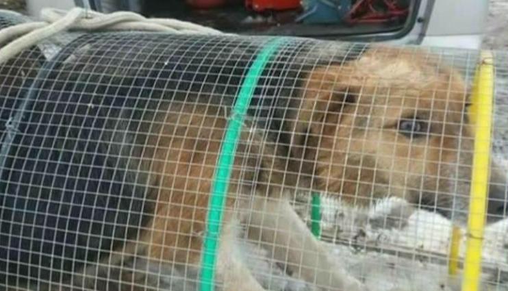 O catelusa a fost salvata dintr-o fantana dupa mai bine de o luna dupa ce a stat fara apa sau mancare
