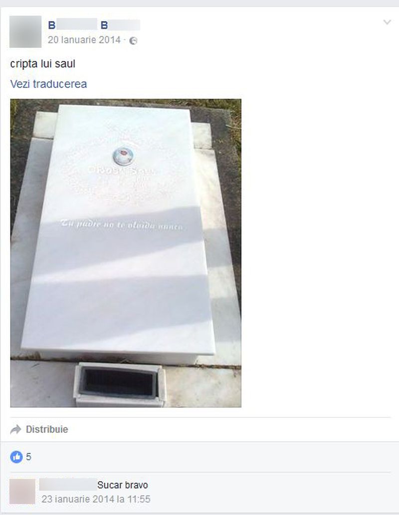 Interesant este ca, initial, prietenii virtuali ai barbatului s-au aratat mai degraba curiosi decat scandalizati, iar unii chiar l-au felicitat pentru grija pe care o are pentru locul de veci al baiatului. Barbatul care a realizat fotografiile traieste de multi ani in Peninsula Iberica, lucreaza la un service auto, iar intr-o fotografie apare alaturi de manelistul Sorinel Copilul de Aur.