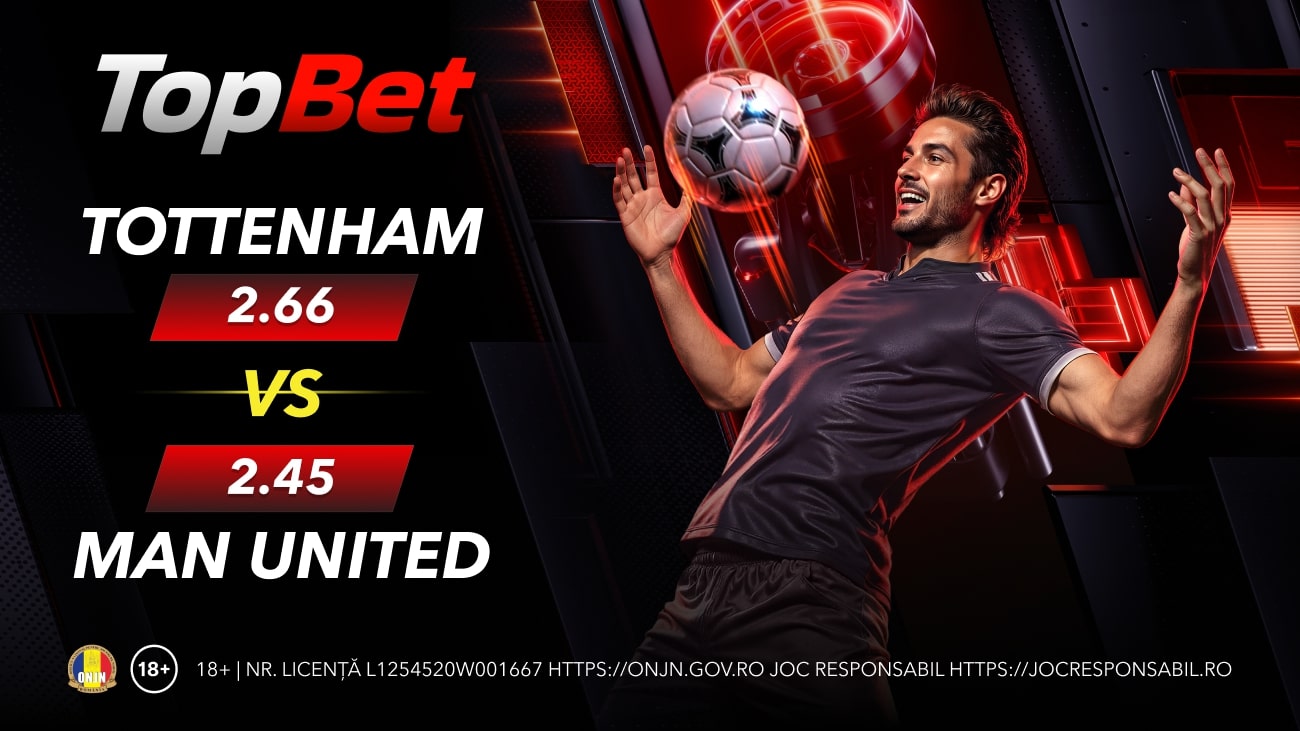 La pariuri online se observă un echilibru aproape perfect în ceea ce privește așteptările pentru confruntarea Tottenham vs Manchester United: cota 2.66 pentru meci câștigat de gazde și cota 2.45 pentru 3 puncte care să meargă către oaspeți. Pentru scor egal, cota este 3.60.