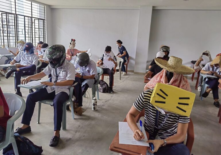 Studenții din cadrul unei facultăți din orașul Legazpi au fost rugați să poarte accesorii pentru cap care să îi împiedice să arunce cu ochiul la lucrările colegilor. Răspunsul acestora a fost unul inedit, studenții făcându-și pălăriile acasă, din carton, cutii de ouă și alte materiale reciclate, relatează BBC.