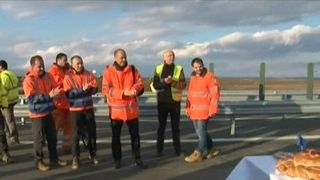 Panglica taiata si petrecere cu sampanie la inaugurarea a 15 kilometri de autostrada pe transonul Lugoj-Deva