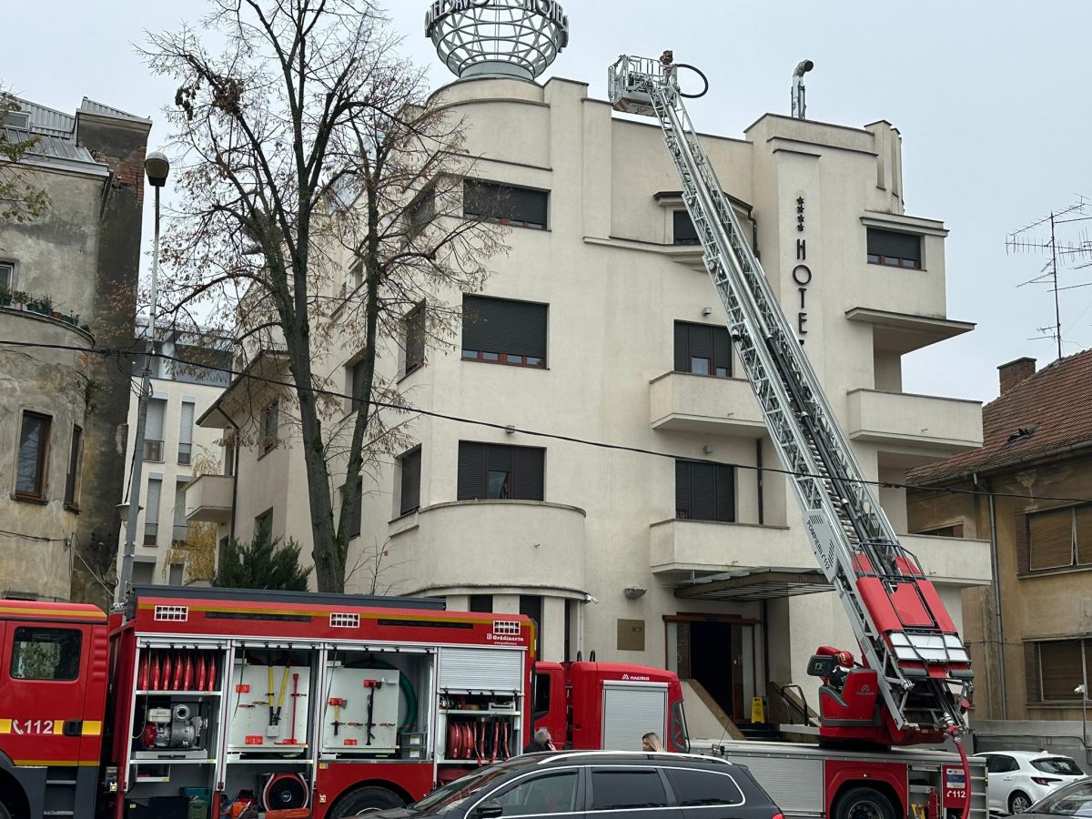 Alarma s-a dat joi, cu puțin timp înainte de prânz, atunci când a fost solicitat ajutorul pompierilor la hotelul din Timișoara.