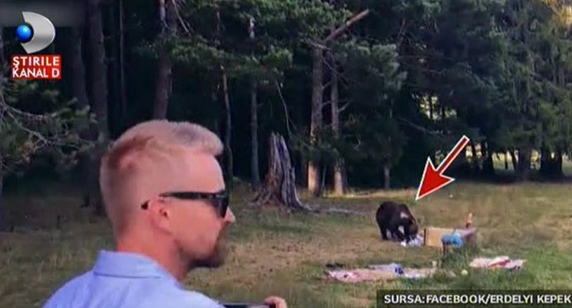 2 din 2 | Panica pentru cativa turisti din Harghita. Un urs a trecut printre ei si s-a pus la masa chiar in fata lor