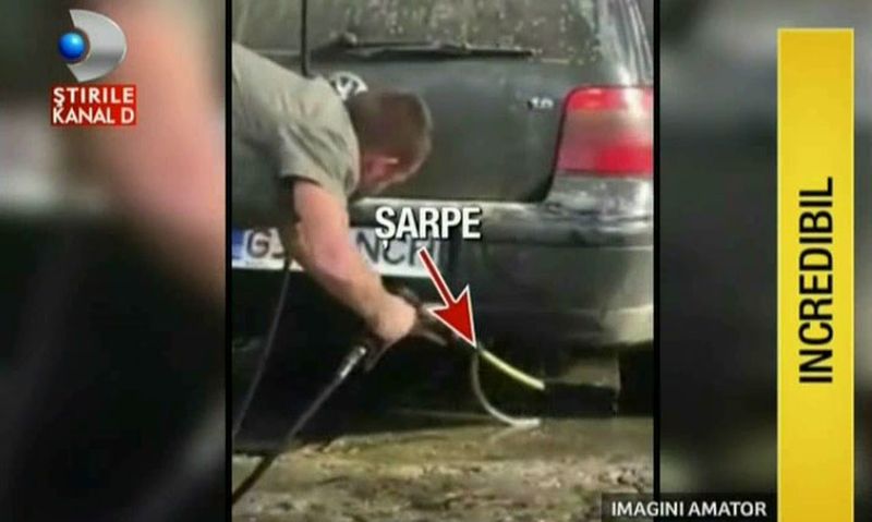 Barbatului mai sa-i stea inima in loc atunci cand a dat cu ochii de taratoarea alunecoasa. De zeci de kilometri plimba cu el un sarpe lung de 1 metru si 35 de centimetri, care isi facuse o ascunzatoare chiar sub caroserie. Ca sa-l inlature, omul a oprit la prima spalatorile.