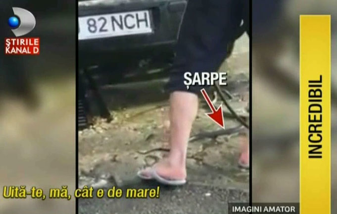 3 din 3 | Panica pentru un sofer din Targu Jiu. Un sarpe, lung de aproape un metru si jumatate, si-a facut ascunzatoare sub caroseria masinii lui