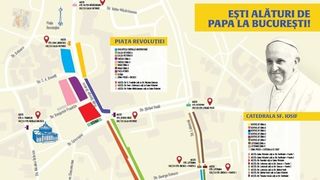Suveranul Pontif va părăsi Catedrala Sf. Iosif după liturghie şi va merge, în papamobil, pe Calea Victoriei până în faţa Ateneului şi a Palatului Regal.