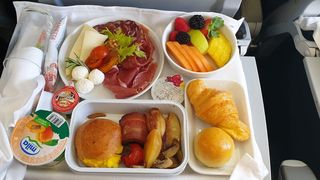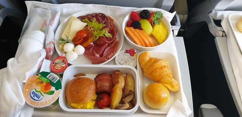Papa în România 2019. Pe durata zborului către România, Papa Francisc a avut un meniu compus din fructe, câteva preparate tipic italiene (mozzarella, prosciutto), omletă și câteva legume la cuptor.
