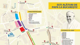 Harta interactiva a traseului Suveranului Pontif la Bucuresti- 31 mai 2019
