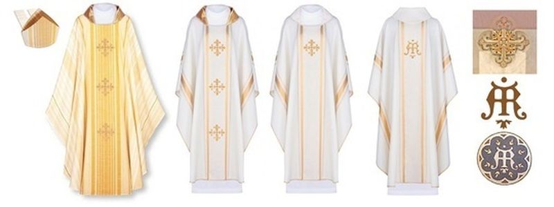 Ele au fost realizate în Polonia, important furnizor de veşminte liturgice, după designul realizat de Comisia Liturgică. Sunt ornate cu câteva simboluri.