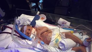 Imaginea din spital a adunat peste 120 de mii de aprecieri si 28 de mii de redistribuiri.Dupa doar cateva zile insa parintii au anuntat moartea micutului Hawk, nascut cu un defect al diafragmei.