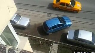 Parcari laterale, demne de Cartea Recordurilor, executate de doua soferite, mai putin pricepute.