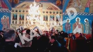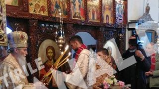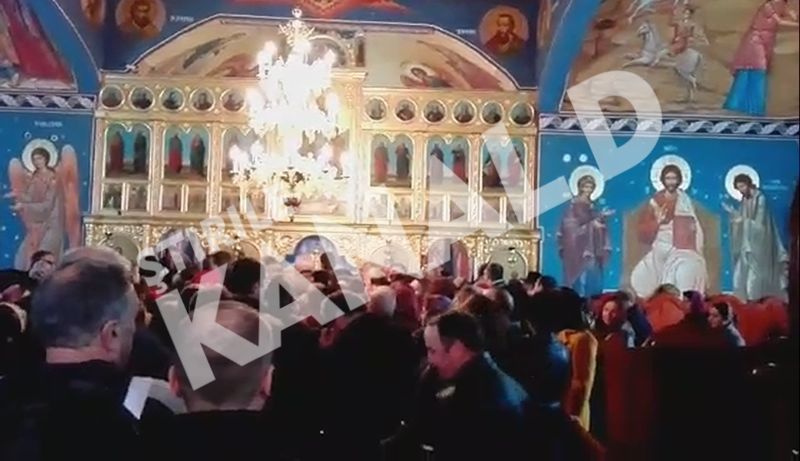 In vechea biserica, Arhiepiscopul Sucevei si Radautilor si ceilalti preoti au continuat slujba. Credinciosii au putut sa intre in altar