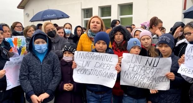 „Nu intrăm online. Vrem la şcoală. Fiecare copil are dreptul la învăţământ fizic. Certificatul verde nu este legal. Profesorii nu trebui să se vaccineze ca să meargă elevii la şcoală. Poate au boli şi nu se pot vaccina”, au transmis părinţii elevilor.