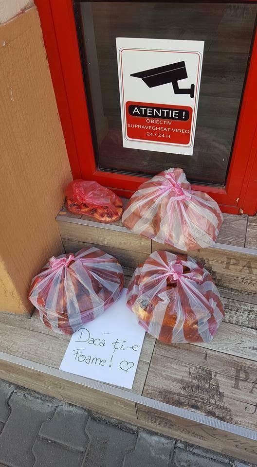In Targu Mures, pe strada Bartok Bela, o cafenea lasa in fiecare zi, dupa terminarea programului, in fata usii pungi cu produse alimentare nevandute.