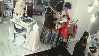 De 20 de minute, hoata zaboveste in magazin, avand timp berechet sa fure pe alese. Cei doi complici, care se folosesc de un bebelus drept paravan, o tin ocupata pe patroana. Uluitor e ca niciunuia dintre cei implicati nu-i pasa ca sunt filmati, pas cu pas.