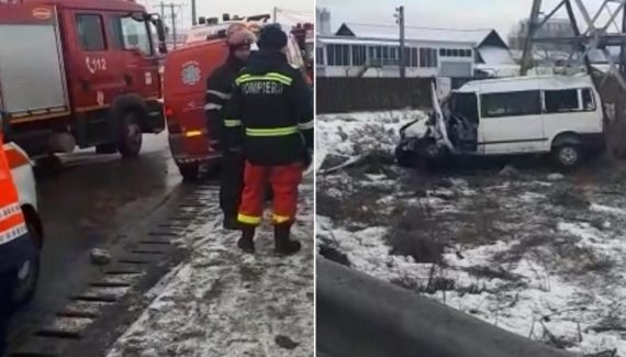 Patru copii rămași orfani, după ce microbuzul în care se afla mama lor s-a izbit de un stâlp de electricitate