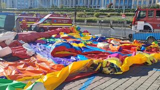 4 din 4 | VIDEO. Patru copii răniți după ce vântul a luat pe sus un tobogan gonflabil din Piața Constituției