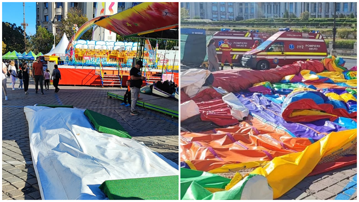 2 din 4 | VIDEO. Patru copii răniți după ce vântul a luat pe sus un tobogan gonflabil din Piața Constituției