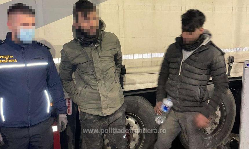 1 din 2 | Patru indivizi de cetățenie străină au călătorit din Turcia până în România, ascunşi pe osiile unor semiremorci