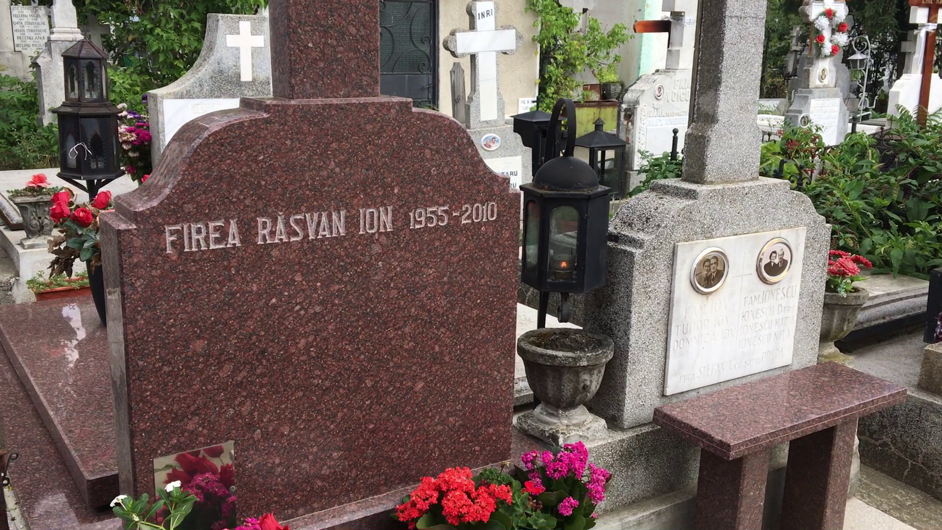 4 din 5 | Paznicii cimitirului Sfanta Vineri supravegheaza cu atentie mormantul lui Rasvan Firea. Locul de veci e plin cu flori scumpe si reprezinta o tentatie pentru hoti.