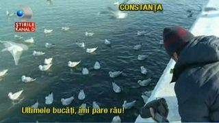 Au dat spectacol si pasarile din portul Tomis, atunci cand au vazut ca primesc atata mancare. Lihnite de foame si vlaguite dupa lupta cu gheata, pescarusii, ratustele si lebedele au avut un pranz copios. Primele venite au fost si cele care au prins portiile cele mai mari. Sorin Belu, ecologist: In momentul acesta lebedele si-au gasit un adapost in Portul Tomis ca in fiecare iarna foarte grea si am incercat sa la ajutam pentru ca in momentele acestea nu prea au hrana.